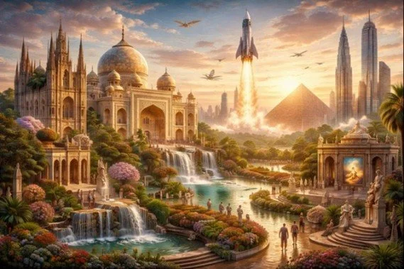 At the deepest level of the soul’s desire lies the yearning for home. To escape our sense of confinement, we endlessly attempt to recreate that home in countless forms. We build cathedrals and palaces, gardens and pyramids, skyscrapers and spacecraft. We create art of astonishing beauty and invent experiences meant to simulate paradise. We conquer lands, extend influence, and even dominate others in an effort to feel the vastness, power, and security of a heavenly dwelling. We strive for perfection in our relationships, our bodies, and our lives. But these marvels are earthly manifestations of what we hope to return to in their most genuine forms. We use concrete material to anticipate and imitate that which is not concrete … that which is of the soul’s realm… heaven. But we are so confined to this world that heaven can be described only in concrete terms, for example: “the streets are paved in gold” (Revelation 21:21).
