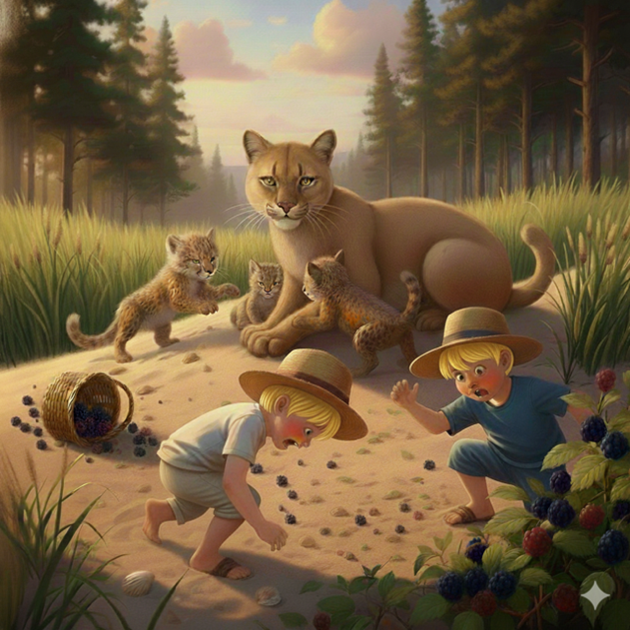 Perched on a nearby dune was a giant panther, her kittens tumbling playfully around her feet. When her eyes met ours, we froze, then dropped our pots and ran for our lives. Our guts told us to flee. Gasping for breath, we burst into the cottage and told our mother. She drove us back to see if what we saw was real. And there she was—the great, regal cat, still standing watch over her young.